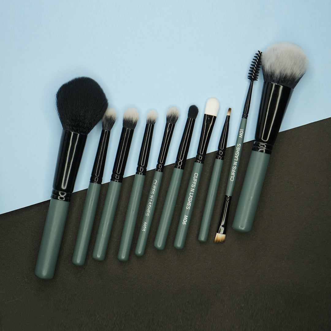 Cuffs N Lashes Mini Makeup Brushes Set Of 10 - With Sponge
